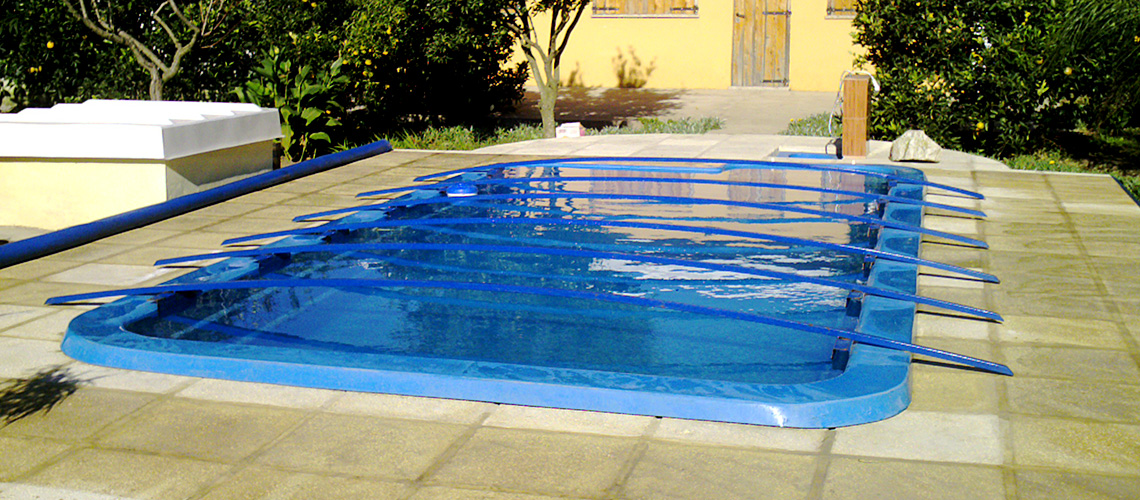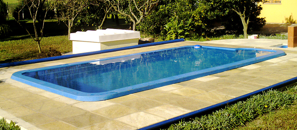 Su escalera rectangular permite un cómodo acceso a la piscina.