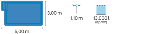 Dimensiones: 5.00 x 3.05 x 1.10 mts.