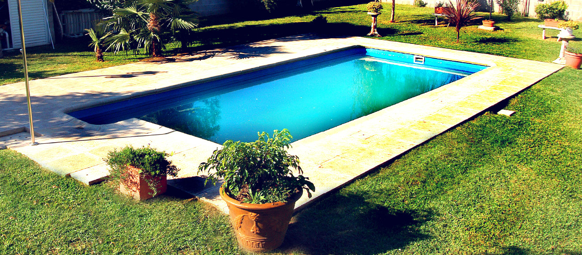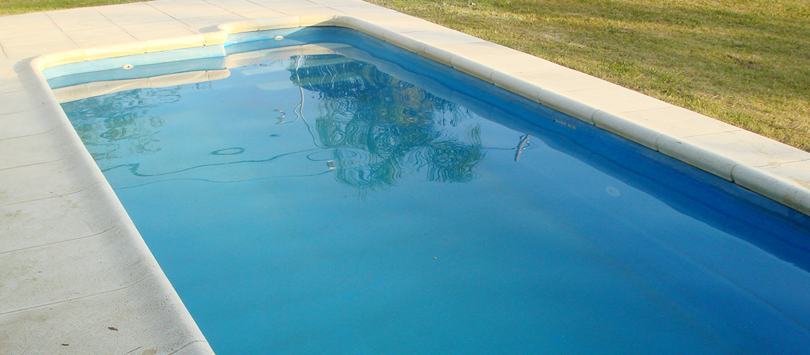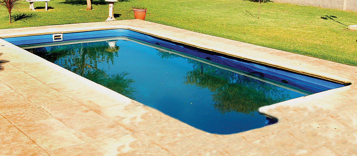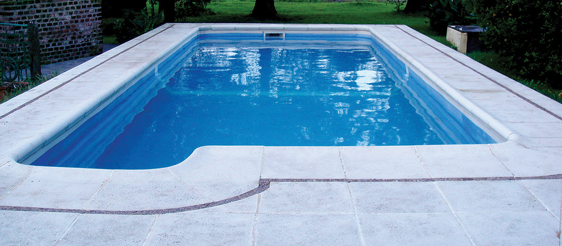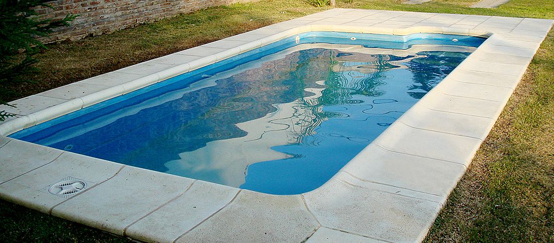 Su escalera rectangular permite un cómodo acceso a la piscina.