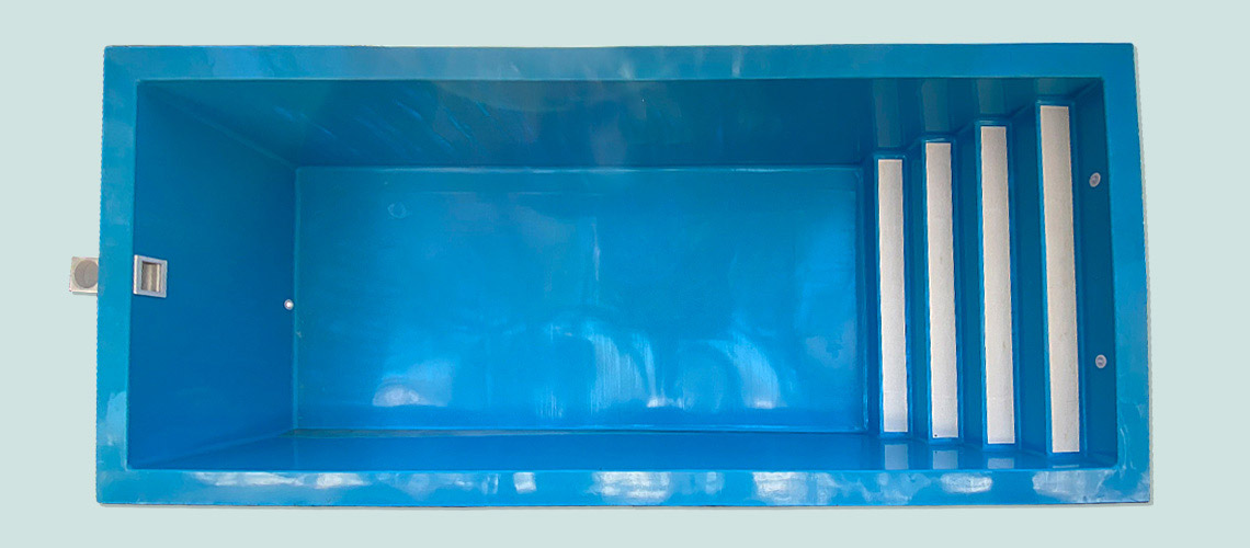 Su escalera rectangular permite un cómodo acceso a la piscina.