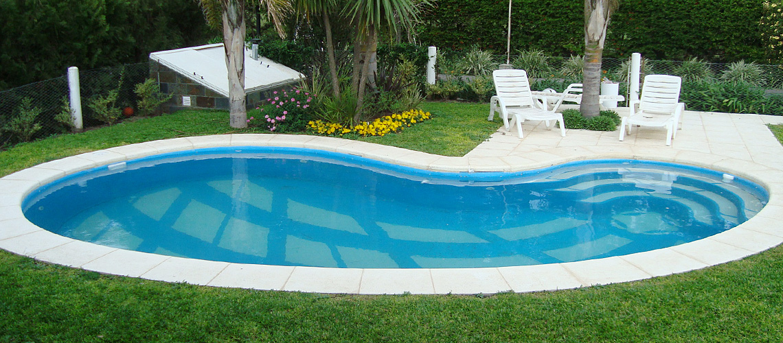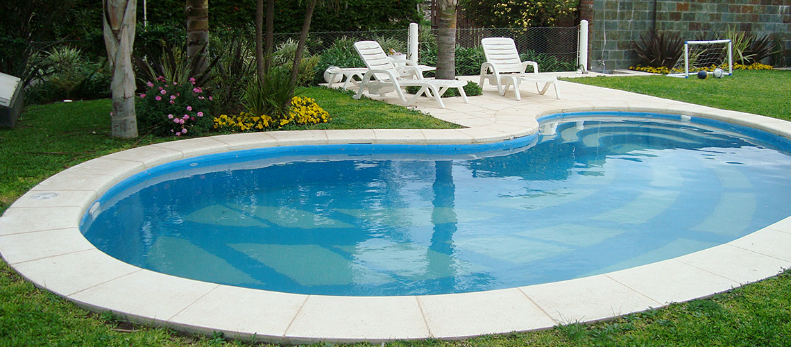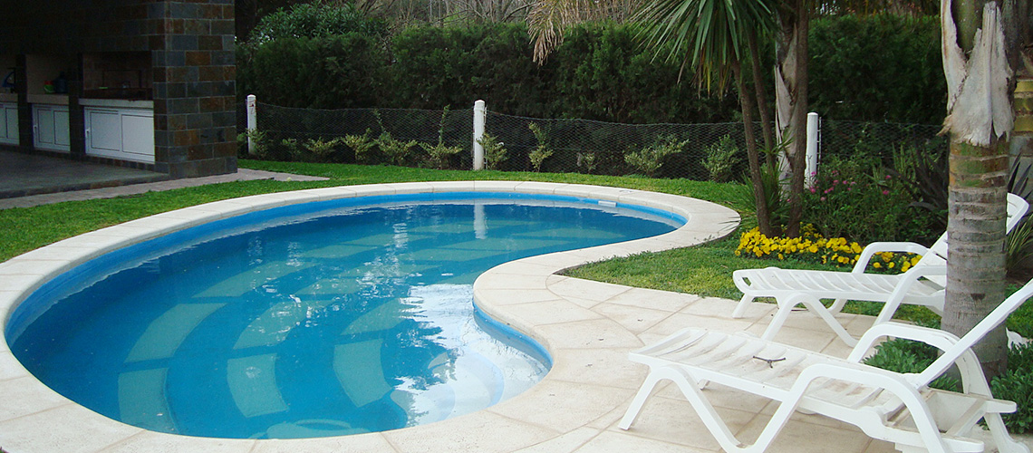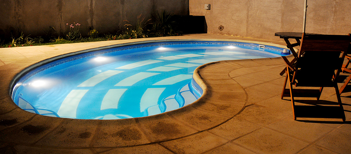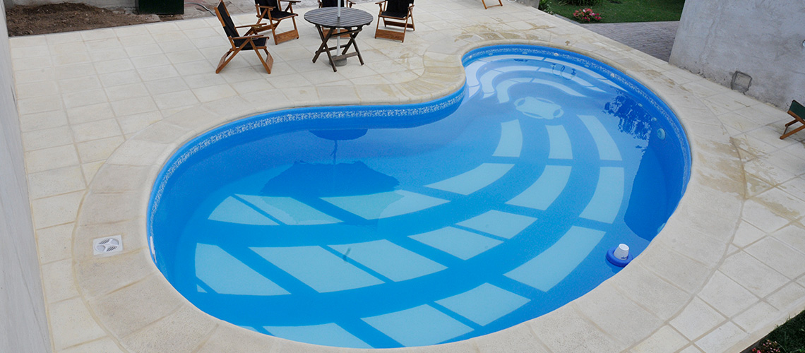 Su amplia escalera romana permite un acceso muy cómodo a la piscina. Con forma de semicírculo cumple con la función de solarium.