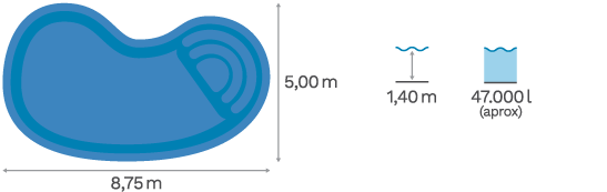 Dimensiones: 8.75 x 5.00 x 1.40 mts.