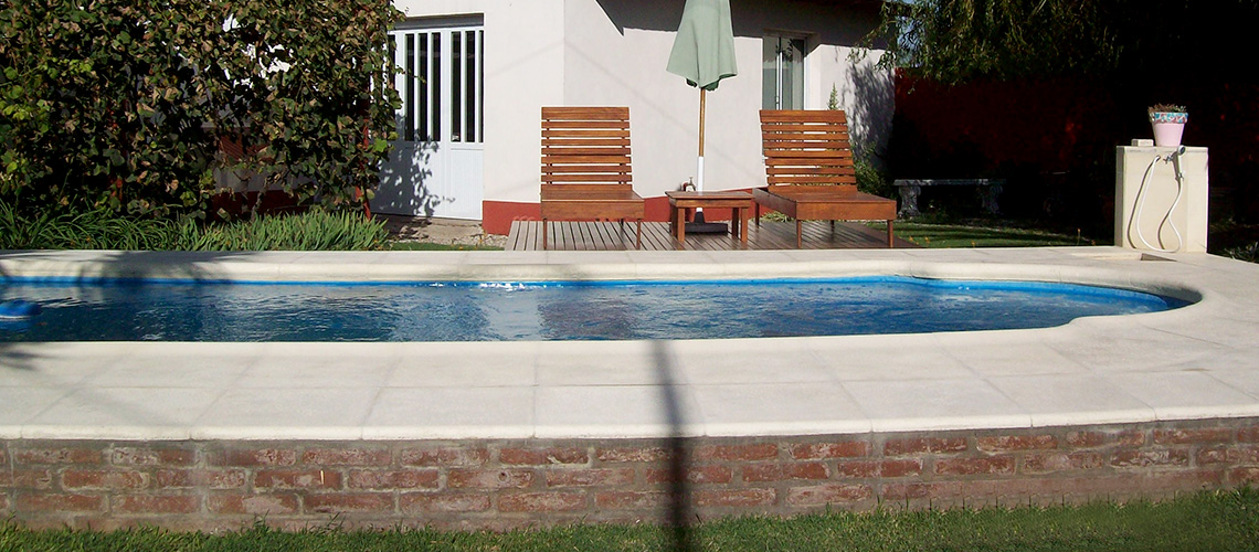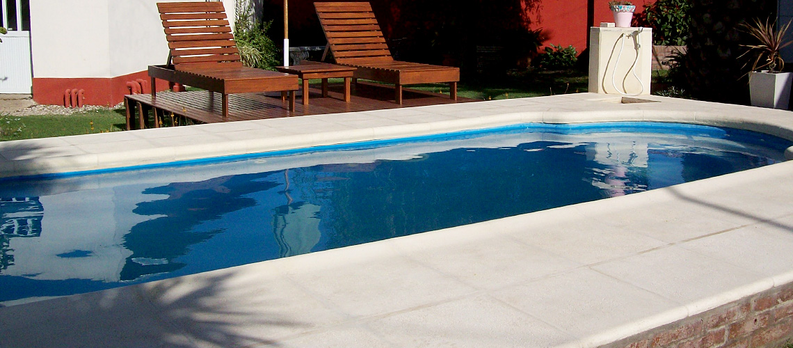 Su amplia escalera romana permite un acceso muy cómodo a la piscina, con forma de semicírculo cumple con la función de solarium.