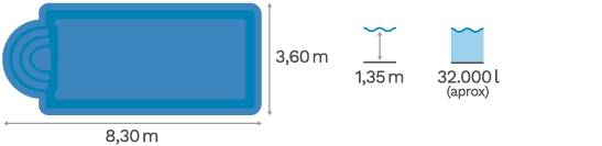 Dimensiones: 8.30 x 3.60 x 1.35 mts.