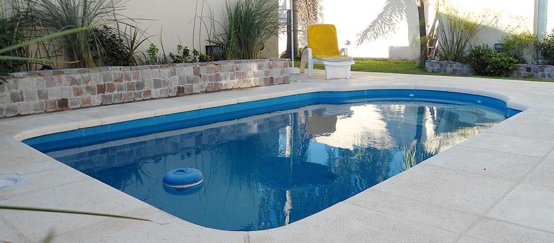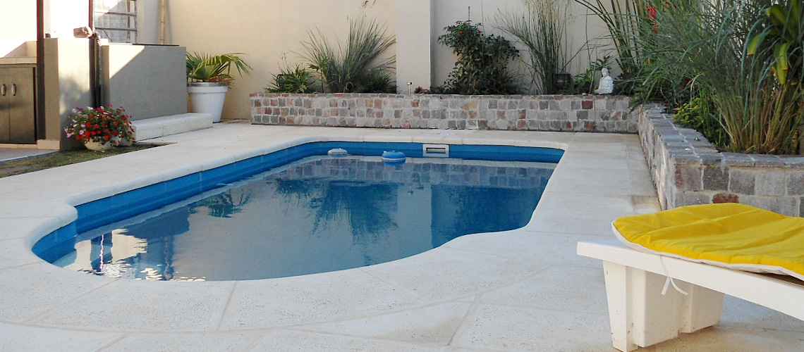 Su amplia escalera romana permite un acceso muy cómodo a la piscina, con forma de semicírculo cumple con la función de solarium.