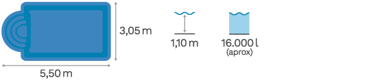 Dimensiones: 5.50 x 3.05 x 1.10 mts.