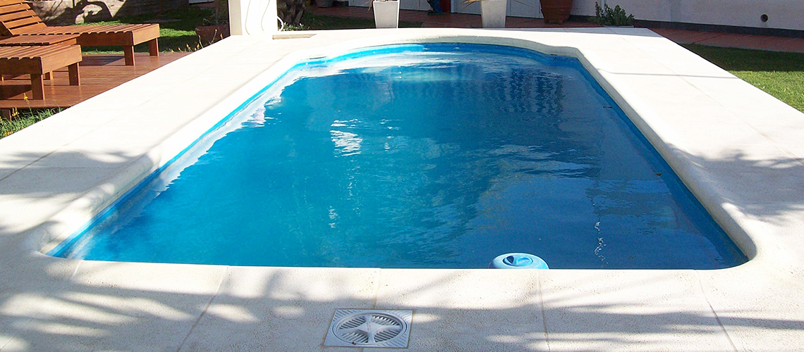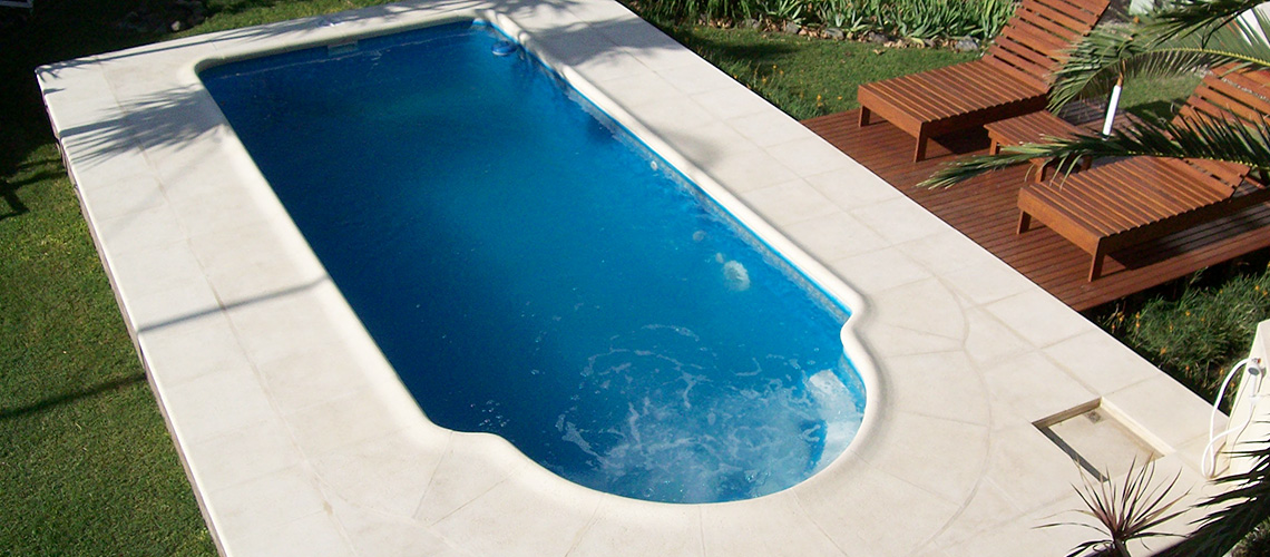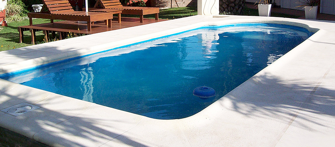 Su amplia escalera romana permite un acceso muy cómodo a la piscina, con forma de semicírculo cumple con la función de solarium.