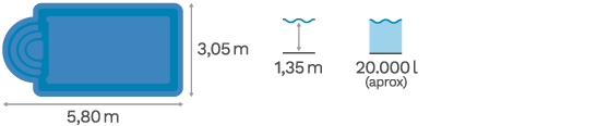 Dimensiones: 5.80 x 3.05 x 1.35 mts.