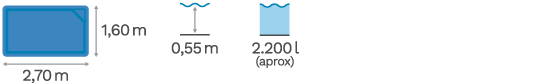 Dimensiones: 2.70 x 1.60 x 0.55 mts.