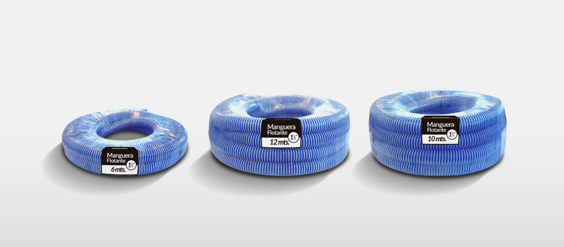 Manguera flexible flotante bicolor de diámetro ø 1 1/2" o 1 1/4". Fabricadas con material virgen, garantiza una excelente vida útil, resistiendo a la abrasión por los rozamientos que se producen normalmente con el uso.